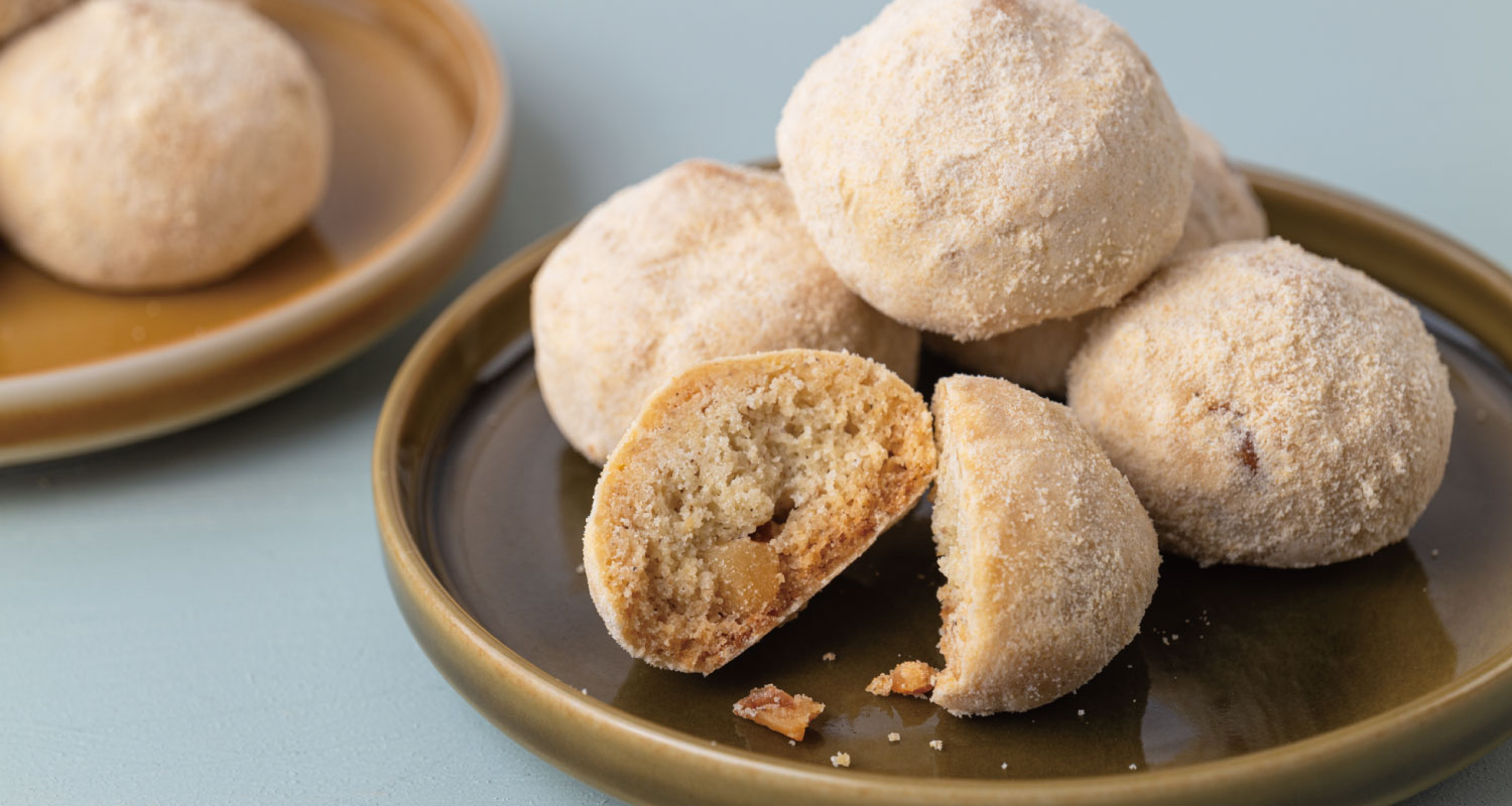 西和賀町産のそば粉を使用し、なかに砕いたクルミを入れ、和三盆糖でまぶしたほろほろ食感の和風クッキーです。